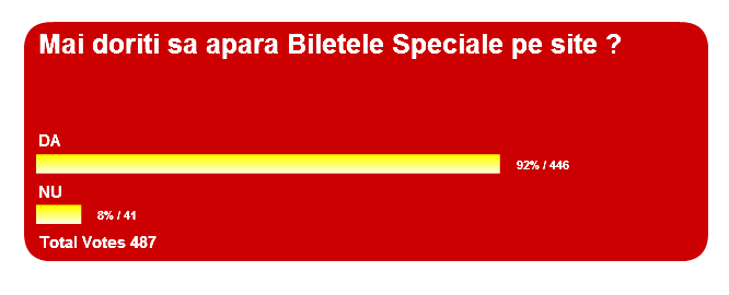 Astazi revenim cu un nou bilet special dupa ce sondajul pe care l-am efectuat a fost pozitiv.