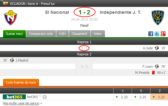 Asadar, va recomandam sa pariati pe victoria lui Independiente J. T. la pauza, acest pronostic avand o cota de 4.00 la Bwin sau 3.60 la Bet365.